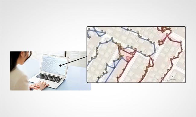 みちびきの高精度測位情報(サブメータ級測位補強サービス)により、配布状況を正確かつリアルタイムに把握・一元管理することで、配達エリアの誤配や配達漏れを防ぎ、各戸単位での訪問記録を管理できます。