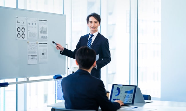 お問い合わせから⼤体1週間以内に、ヒアリングをさせていただきます。基本的に御社にお伺いいたしますが、弊社へご来社いただくこともございます。