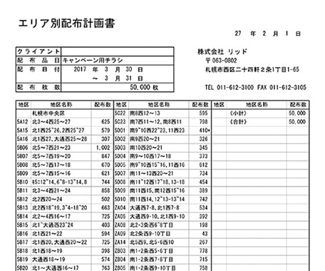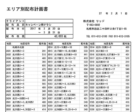 どのエリアに何枚配布するのか【エリア別配布計画書】を作成いたします。